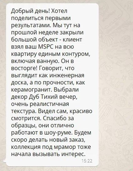 Наши партнёры по всей России отмечают, что Stone Floor — это бренд, которому они доверяют настолько, что укладывают наши полы себе домой. Для нас это показатель высшей степени доверия и подтверждение качества.